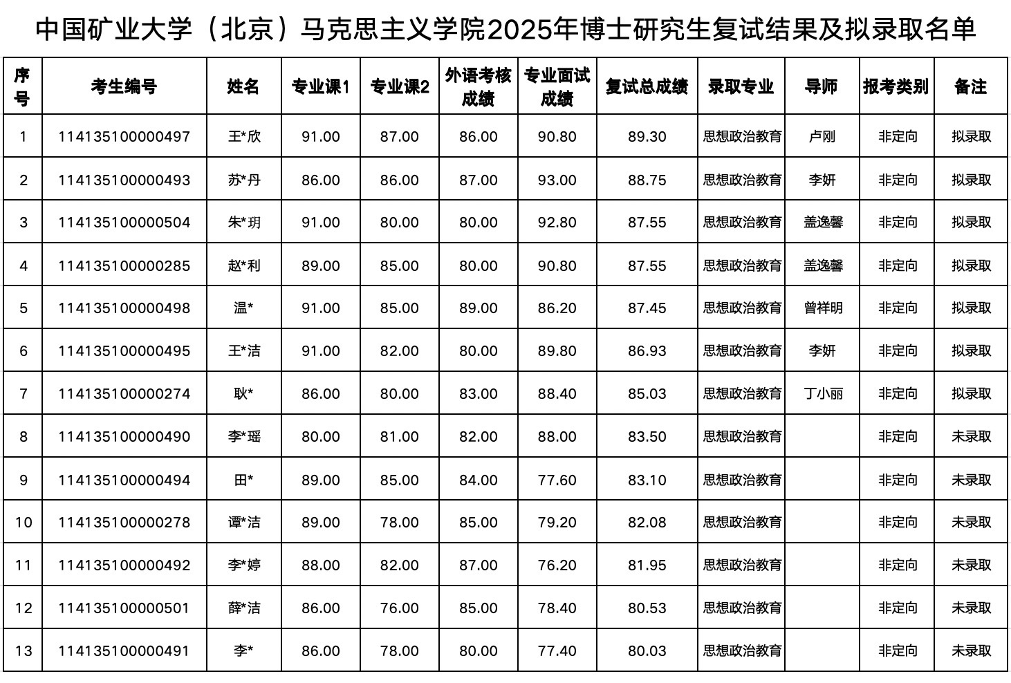 73882必赢欢迎光临网页(北京)73882必赢欢迎光临网页2025年博士研究生复试结果及拟录取名单